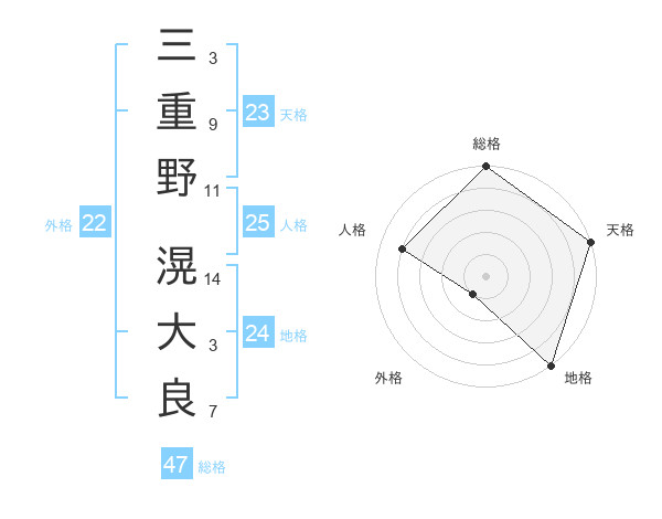 三重野 滉大良さんの総格は47画の5点!