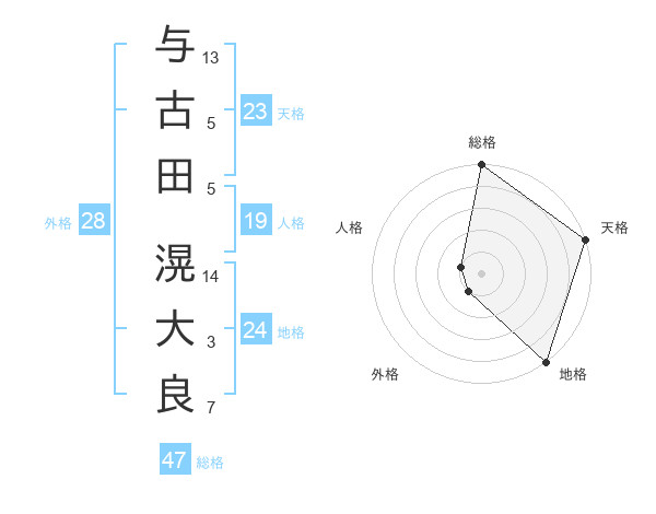 与古田 滉大良さんの総格は47画の5点!