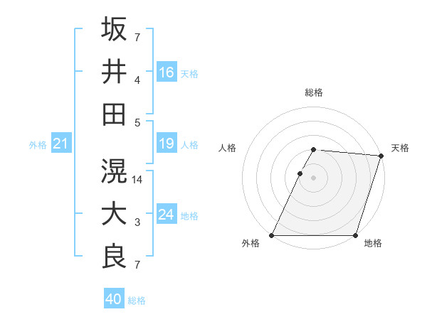 坂井田 滉大良さんを姓名の画数から五運を鑑定