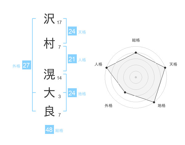 沢村 滉大良さんを姓名の画数から五運を鑑定