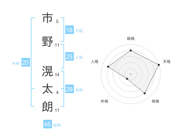 市野 滉太朗さんを姓名の画数から五運を鑑定