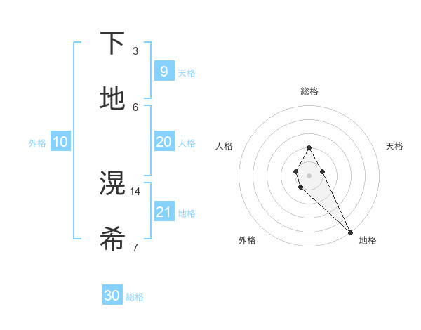 下地 滉希さんの総格は30画の2点!