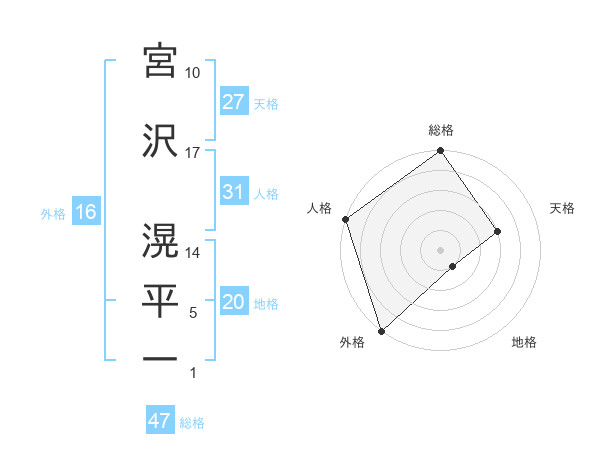 宮沢 滉平一さんを姓名の画数から五運を鑑定