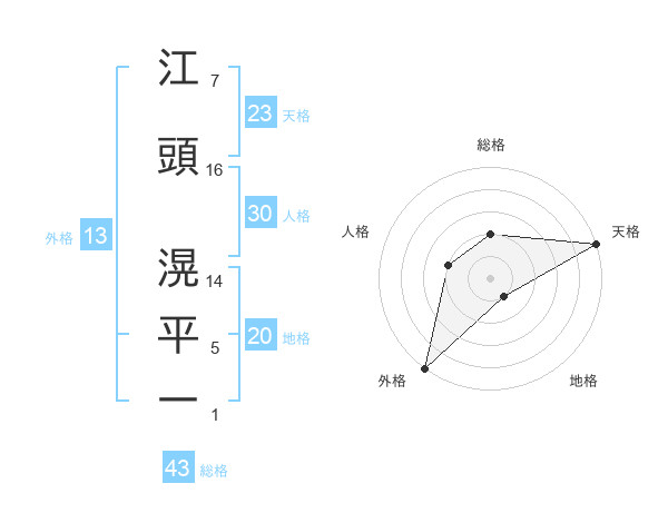 江頭 滉平一さんを姓名の画数から五運を鑑定