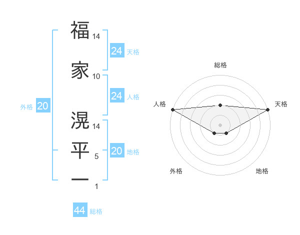 福家 滉平一さんを姓名の画数から五運を鑑定