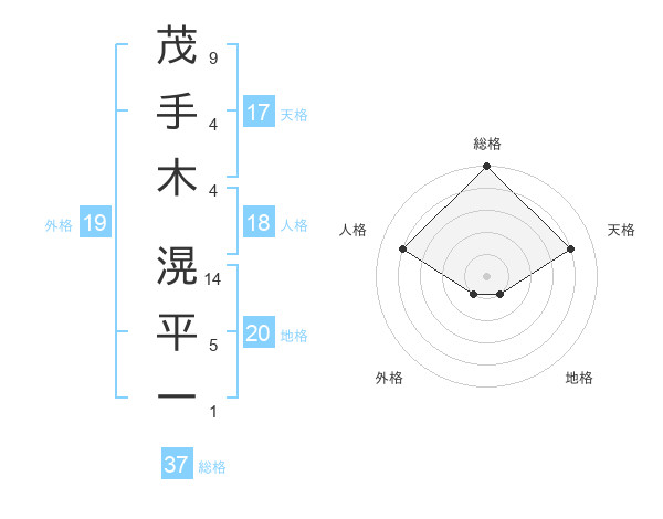 茂手木 滉平一さんの総格は37画の5点!