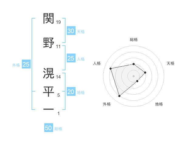 関野 滉平一さんを姓名の画数から五運を鑑定