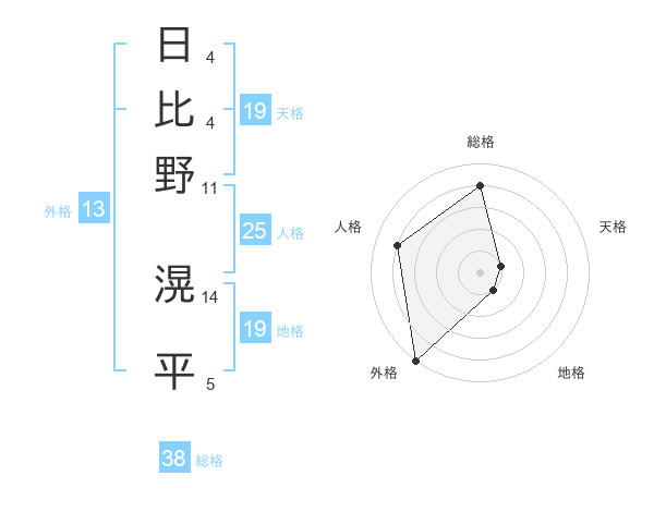 日比野 滉平さんを姓名の画数から五運を鑑定