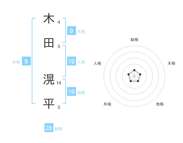 木田 滉平さんの総格は28画の1点!