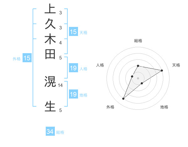 上久木田 滉生さんの天格は15画の4点!