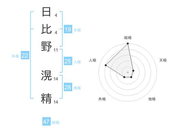 日比野 滉精さんを姓名の画数から五運を鑑定