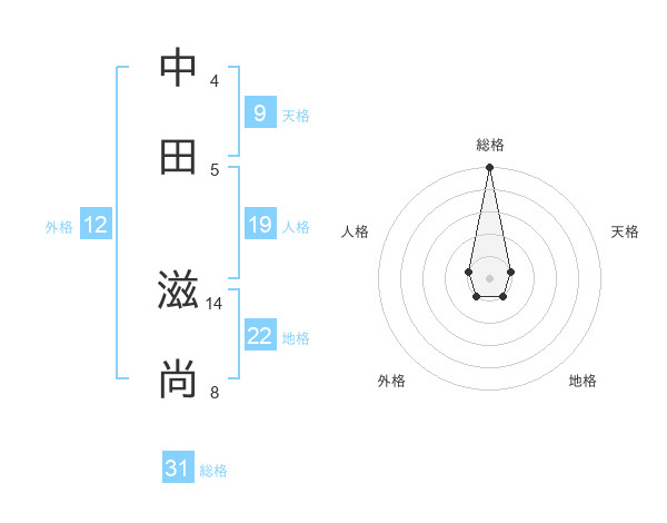 中田 滋尚さんの総格は31画の5点