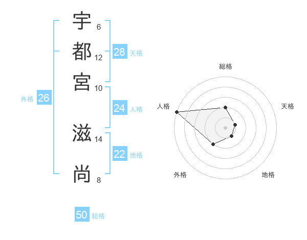 宇都宮 滋尚さんを姓名の画数から五運を鑑定