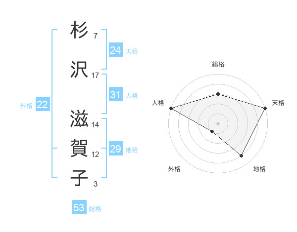 杉沢 滋賀子さんを姓名の画数から五運を鑑定