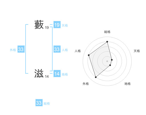 藪 滋さんの総格は33画の4点!