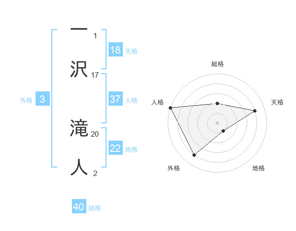 一沢 滝人さんの総格は40画の2点!
