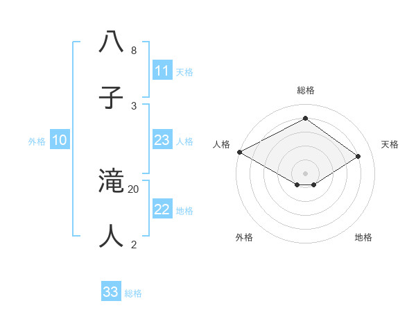 八子 滝人さんの総格は33画の4点!