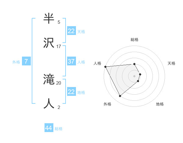 半沢 滝人さんの総格は44画の2点!