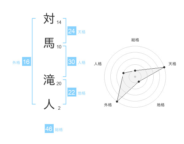 対馬 滝人さんを姓名の画数から五運を鑑定