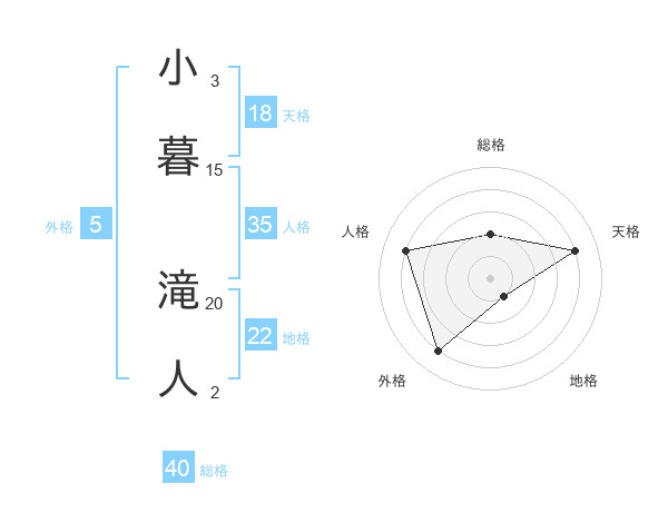 小暮 滝人さんを姓名の画数から五運を鑑定