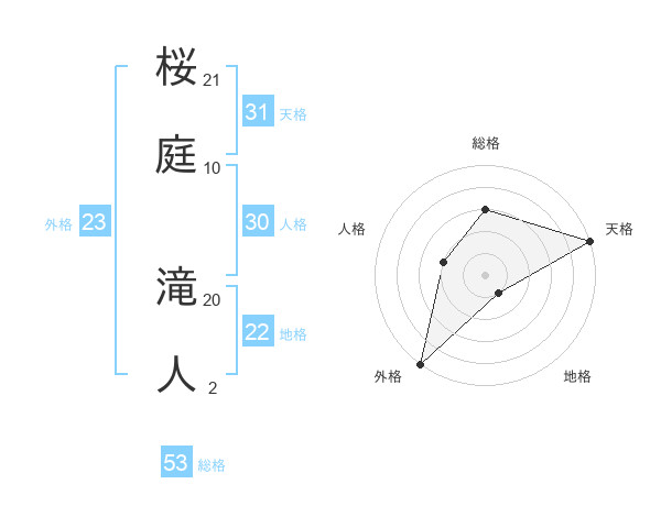 桜庭 滝人さんの総格は53画の3点!