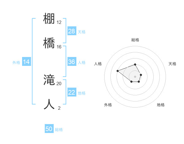 棚橋 滝人さんの総格は50画の2点!