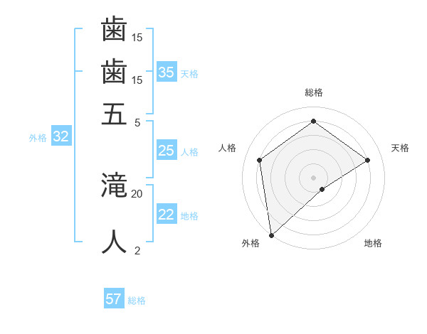 歯歯五 滝人さんを姓名の画数から五運を鑑定