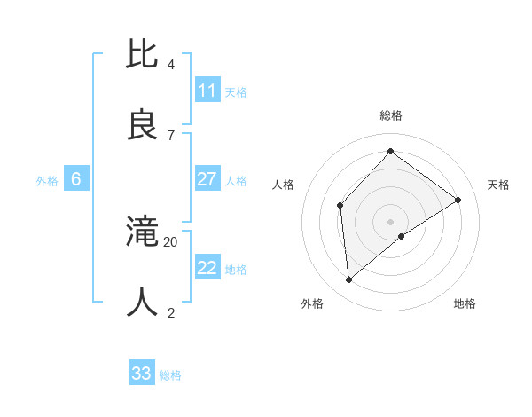 比良 滝人さんの総格は33画の4点!