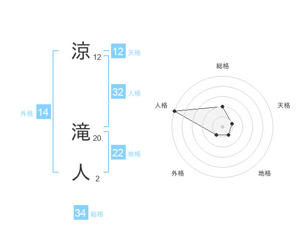 涼 滝人さんの総格は34画の2点!