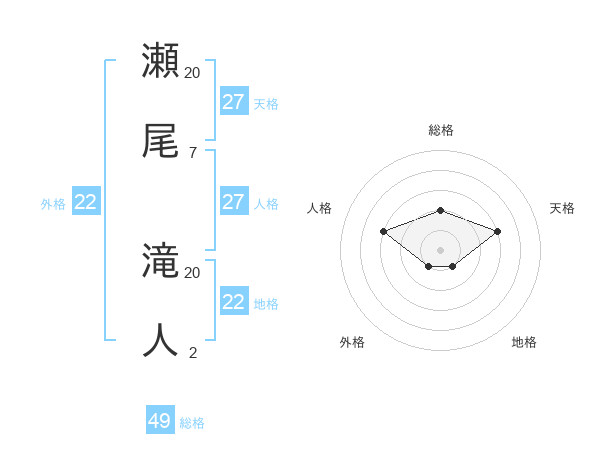 瀬尾 滝人さんを姓名の画数から五運を鑑定