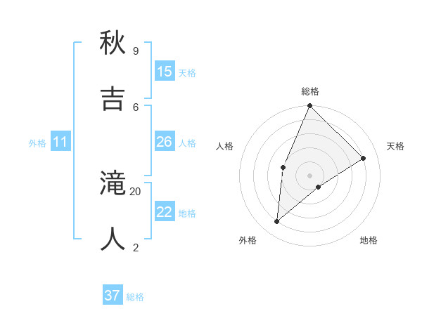 秋吉 滝人さんを姓名の画数から五運を鑑定