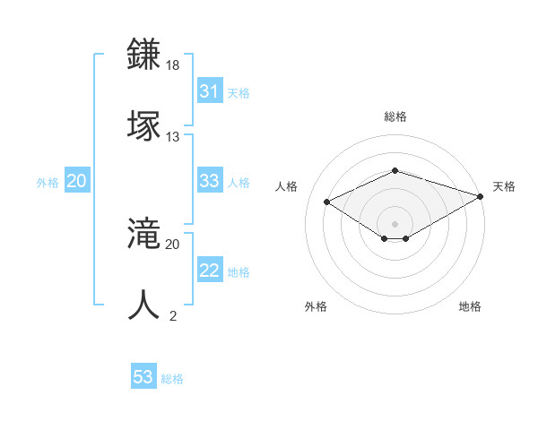 鎌塚 滝人さんを姓名の画数から五運を鑑定