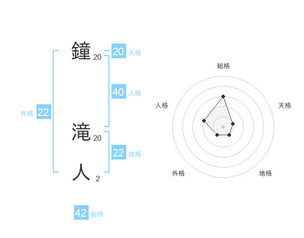 鐘 滝人さんの地格は22画の1点!