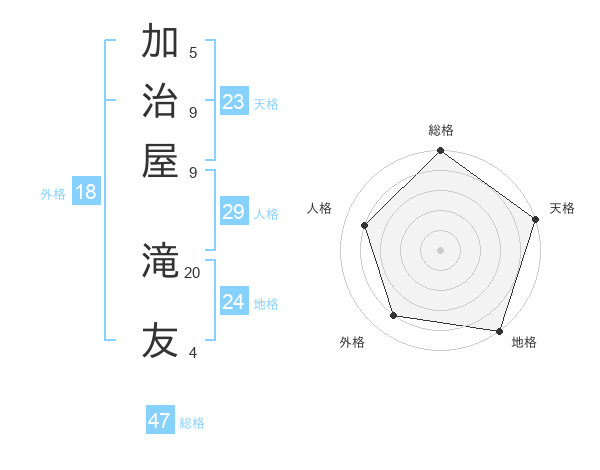 加治屋 滝友さんを姓名の画数から五運を鑑定