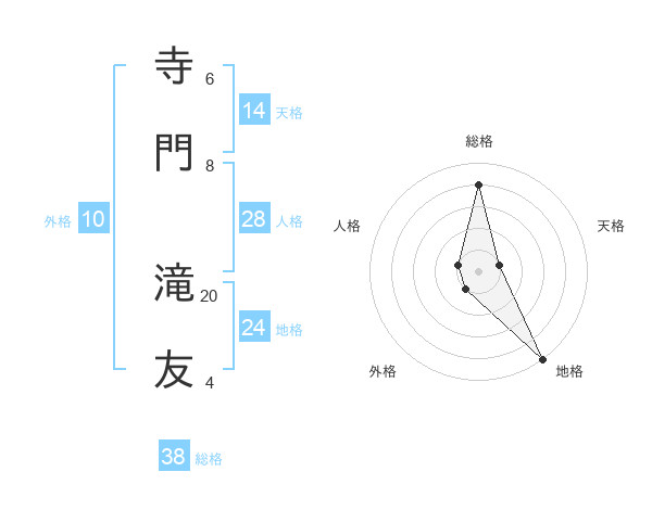 寺門 滝友さんの総格は38画の4点!