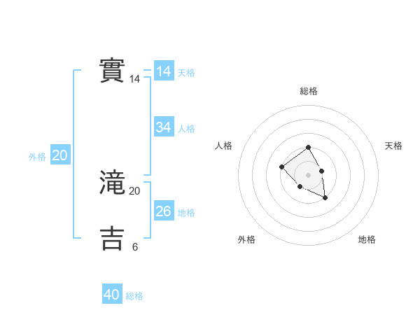 實 滝吉さんの総格は40画の2点!