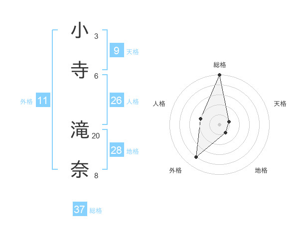 小寺 滝奈さんを姓名の画数から五運を鑑定