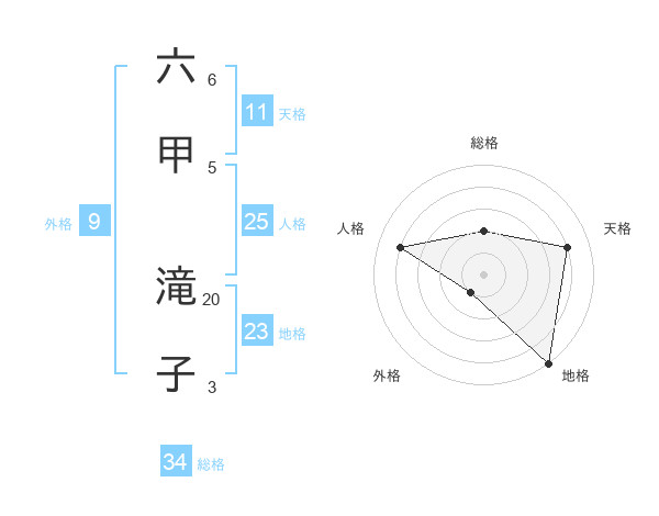 六甲 滝子さんを姓名の画数から五運を鑑定