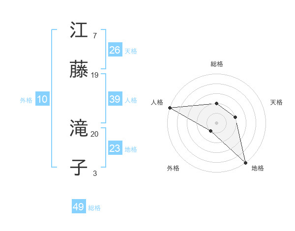 江藤 滝子さんを姓名の画数から五運を鑑定