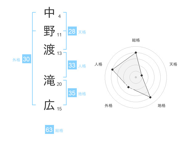 中野渡 滝広さんの総格は63画の4点!