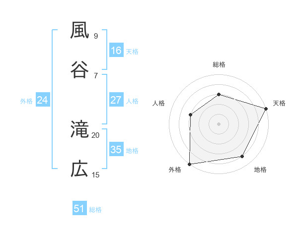 風谷 滝広さんを姓名の画数から五運を鑑定
