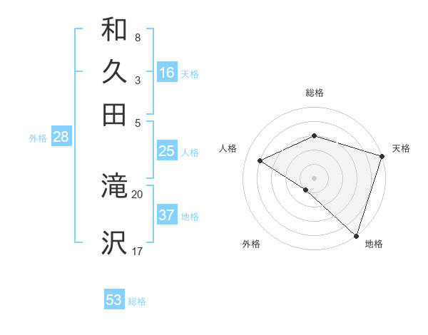 和久田 滝沢さんを姓名の画数から五運を鑑定