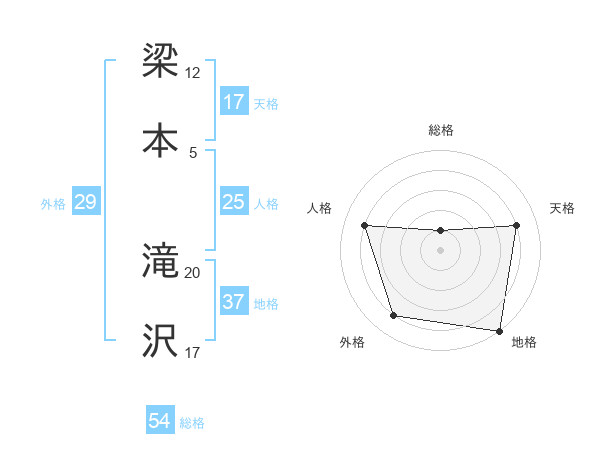 梁本 滝沢さんを姓名の画数から五運を鑑定