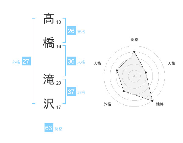 髙橋 滝沢さんの総格は63画の4点!