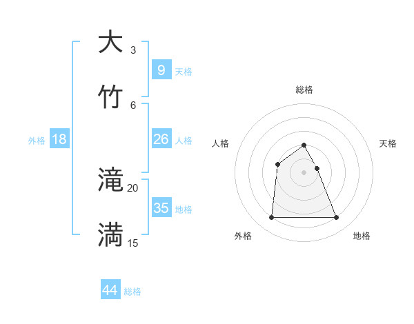 大竹 滝満さんの総格は44画の2点!
