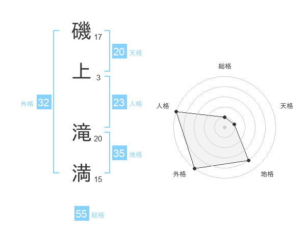 磯上 滝満さんを姓名の画数から五運を鑑定