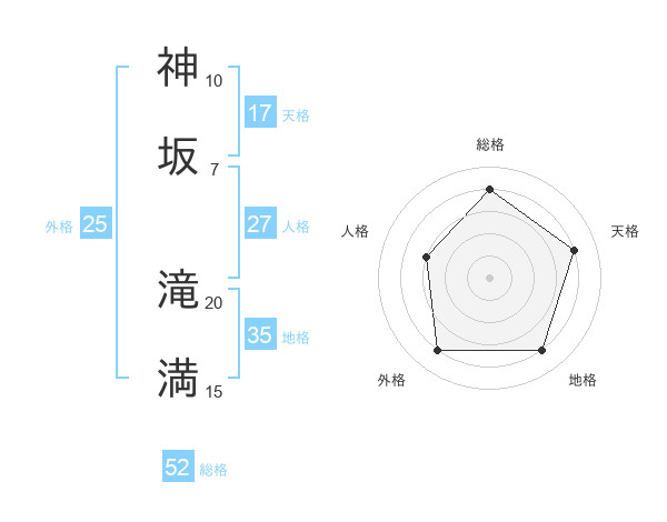 神坂 滝満さんの総格は52画の4点!