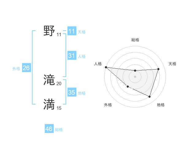 野 滝満さんの人格は31画の5点!