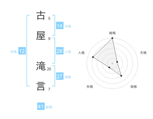 古屋 滝言さんを姓名の画数から五運を鑑定