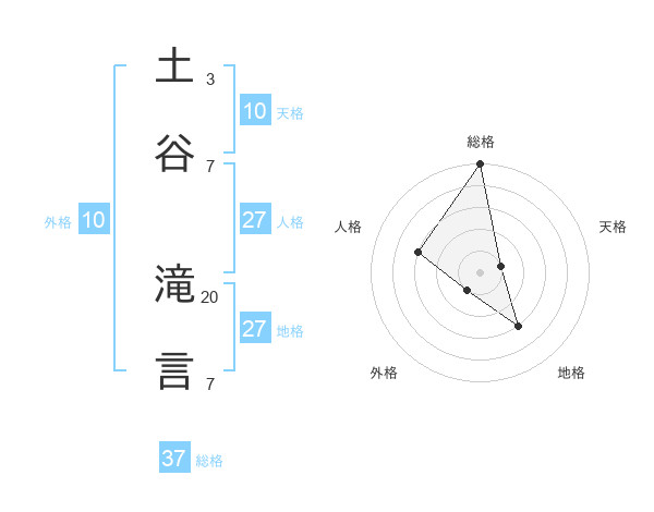 土谷 滝言さんを姓名の画数から五運を鑑定